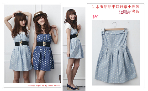翩翩飛舞的瓶口小洋裝配上可愛的Q點點營造輕盈甜美 人人一件VIVI丹寧風的單品 性感 優雅