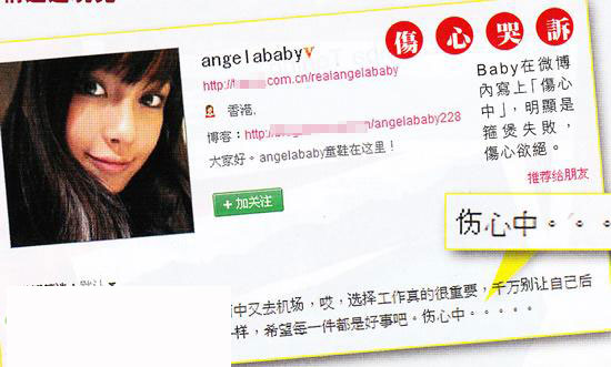 Angelababy在微博一句“伤心中……”来表达她和男友黄晓明玩完了。