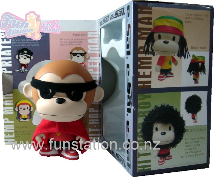 【简介】07年新款猴子公仔 e-sal街頭日記系列四代,存钱罐,有配件 超级卡瓦伊的大头猴造型,风靡港台,人气超高,全套4款,快收集吧