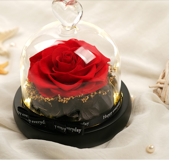 单朵永生玫瑰带灯爱心小花盅 尺寸:10cm x 10cm